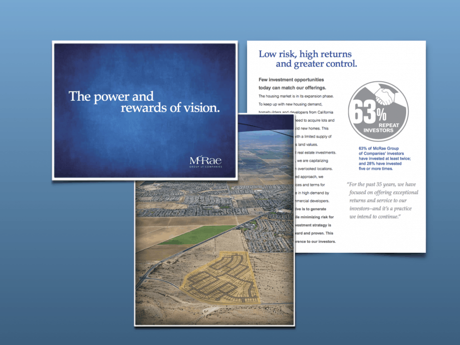 McRae Group of Companies (MCG) is a real estate investment firm with holdings throughout the Southwest. They buy undeveloped and partially developed land, manage it for a period of time and then sell it to homebuilders and commercial developers. The result often yields high returns on the original investment.