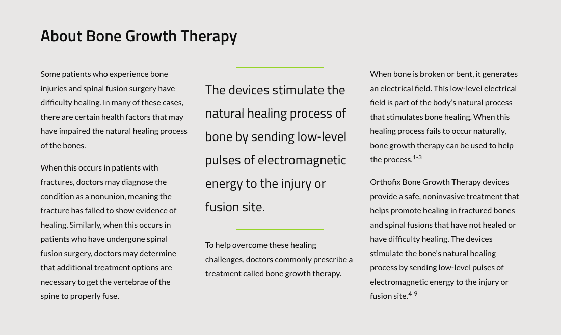 Preface assisted the marketing team at Orthofix in the redesign of their patient website, forming the story behind their electromagnetic medical devices.