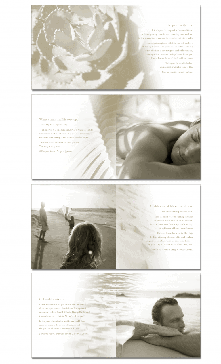 This was a long-term sales process, so we created a phased approach to communicating with prospects. Our first touch point introduced the idea of what Quivira would be. Then, in our second piece, we followed up by painting a more vivid picture with imagery from the site and sharing the backstory of the location and what made it special.
